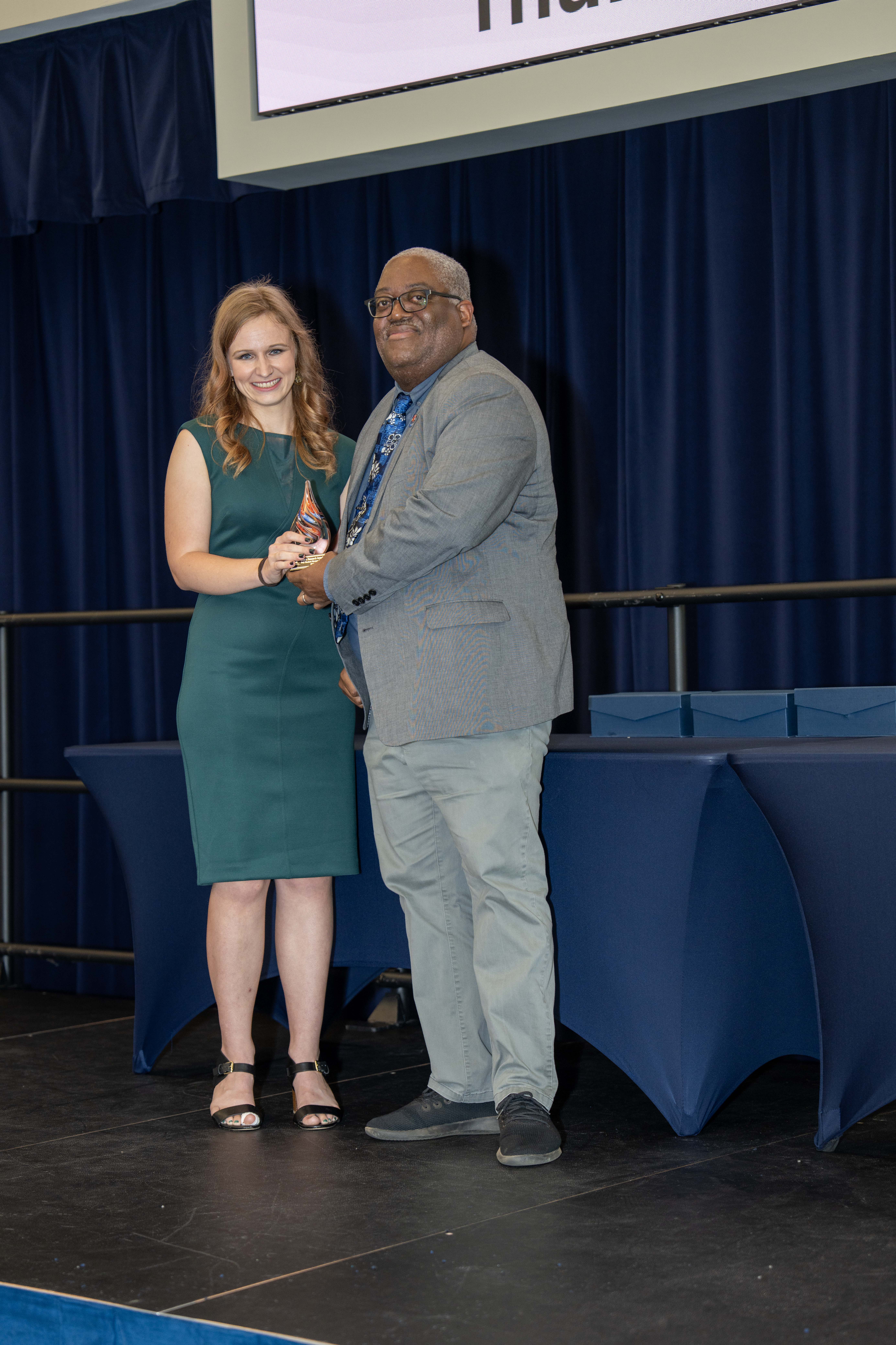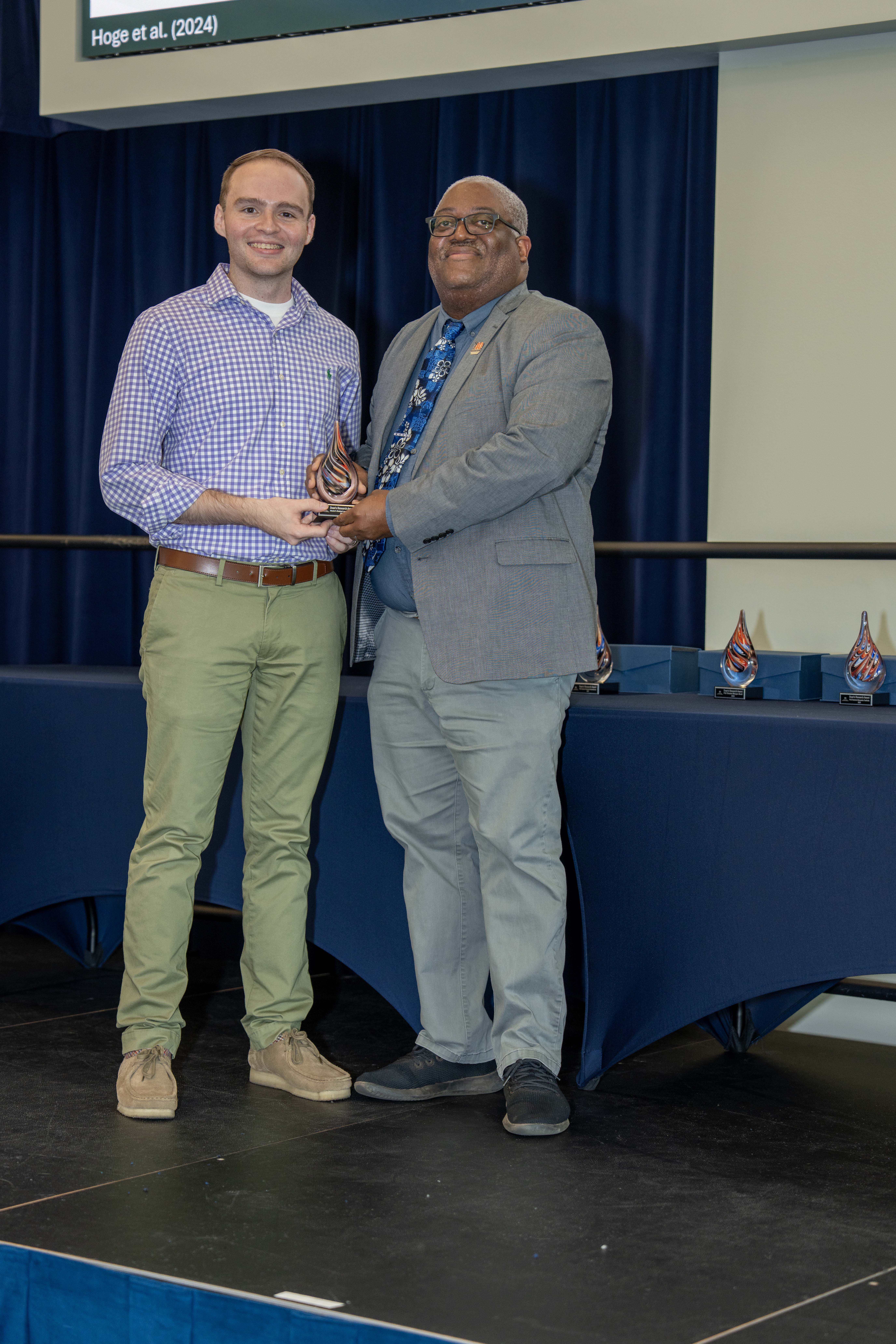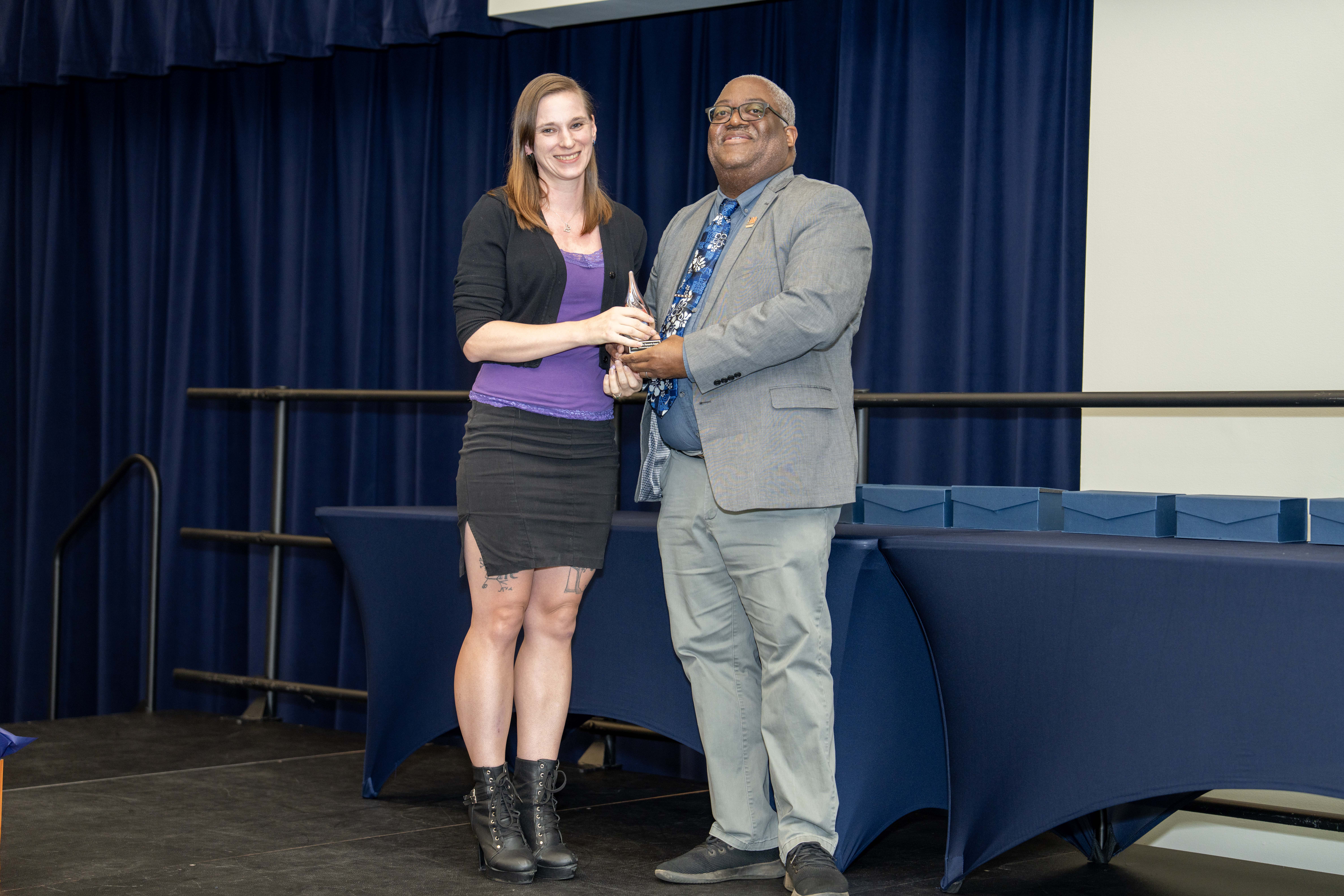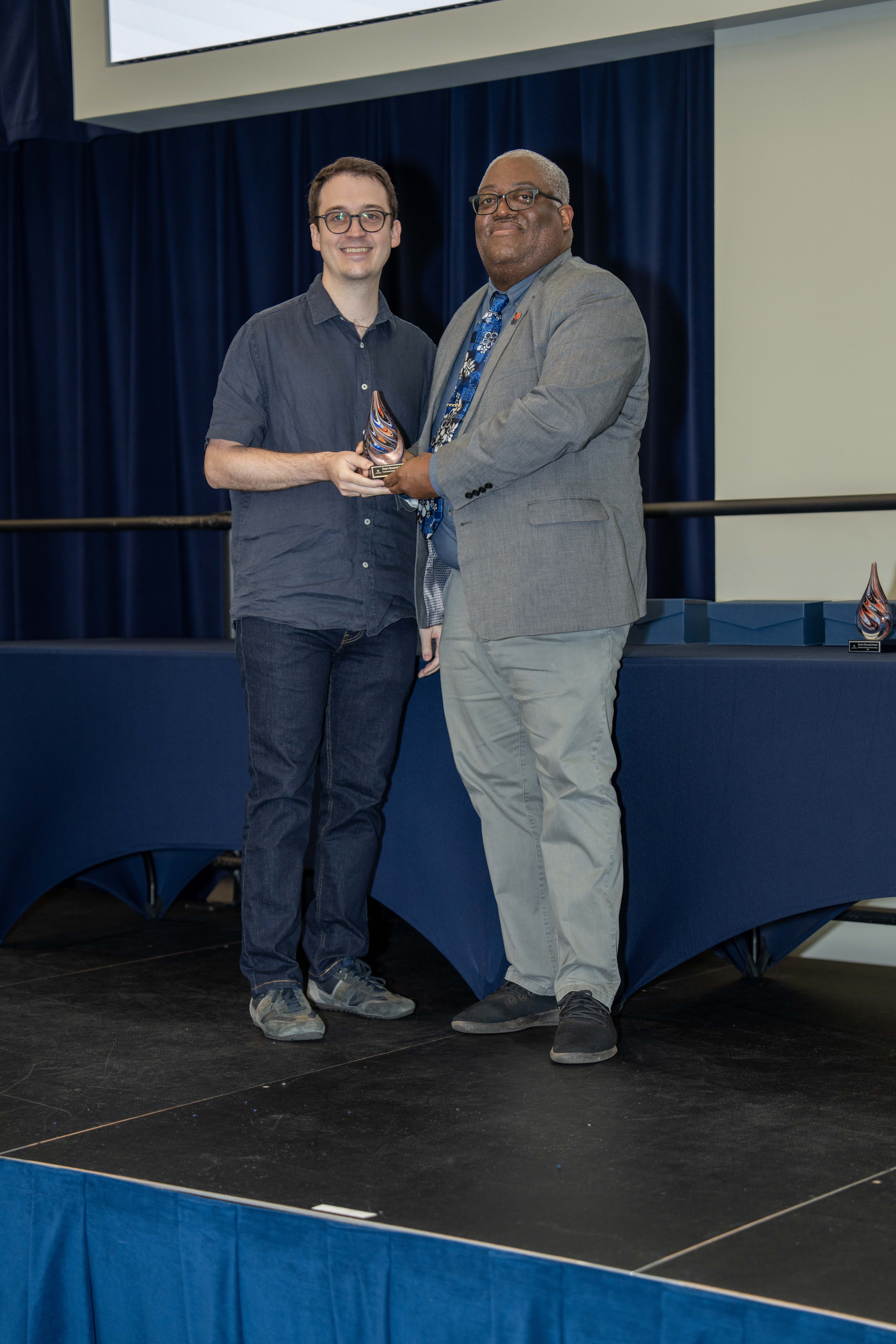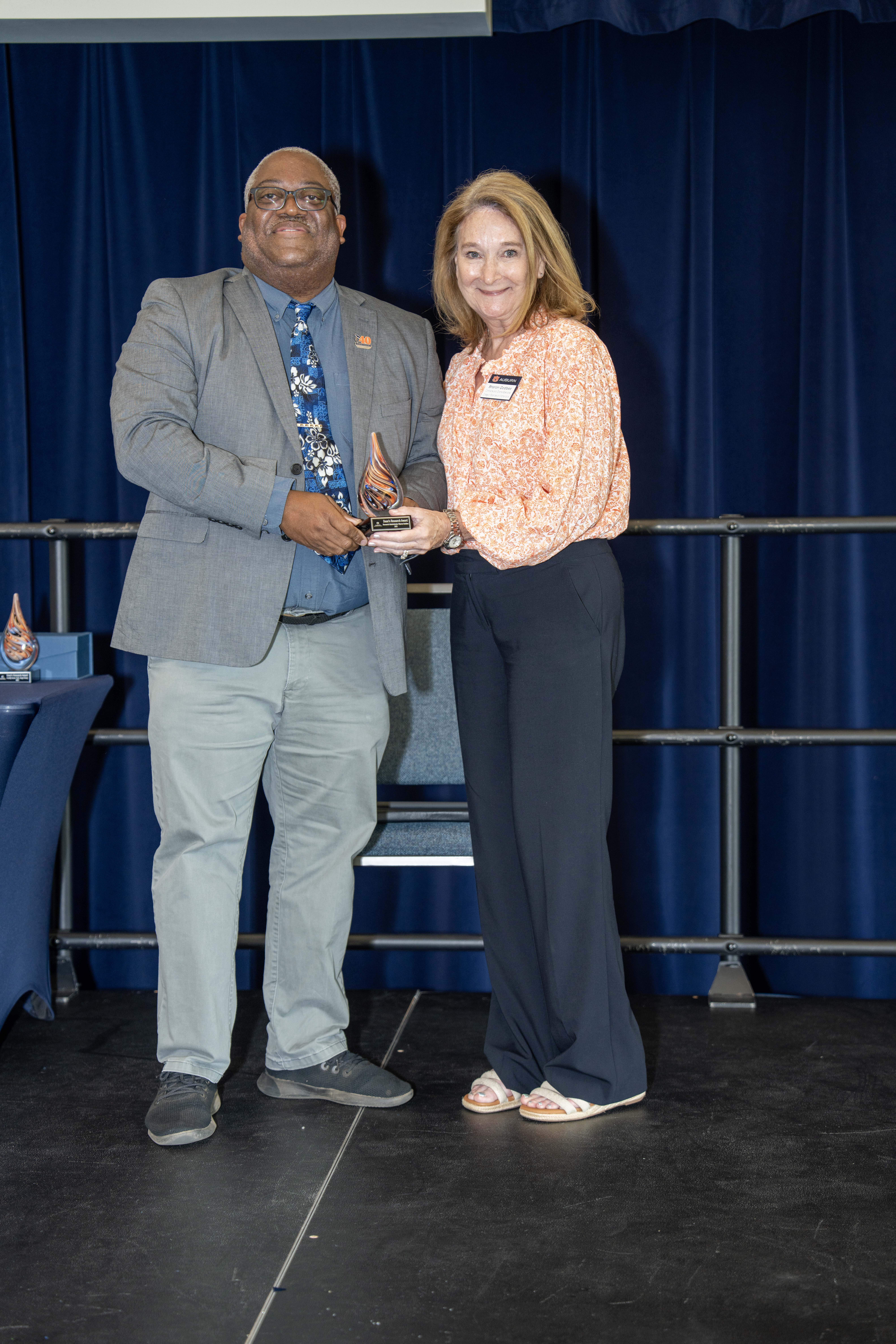 In another first, Sharon Godbee received the inaugural staff Dean’s Research Award. Thomas praised her contributions, noting how Sharon Godbee had helped so many people achieve their research goals, including his own research team. Thomas also highlighted the importance of staff support in advancing COSAM’s research goals.